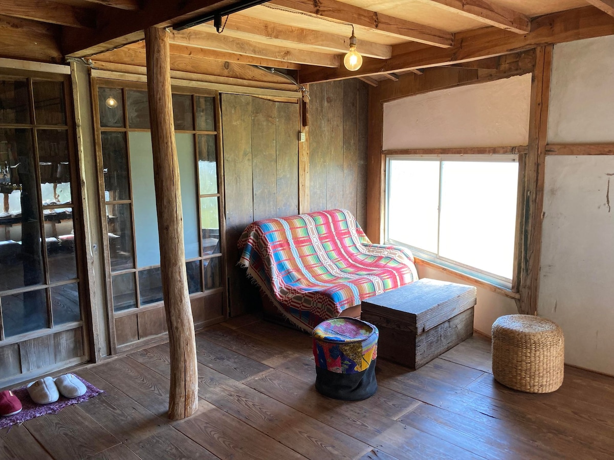 静寂な田舎の山里、築100年の古民家での農家おもてなし民宿。囲炉裏、満天に輝く星空。