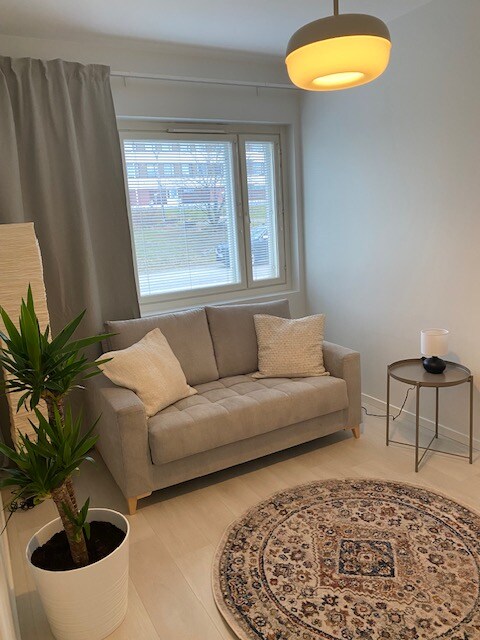 Cozy one-bedroom apartment in Kuopio's harbor district. Enjoy your stay in this comfortable apartment featuring a private sauna, air-conditioning, a glassed-in balcony, a well-equipped kitchen, fast Wi-Fi, and a dedicated parking spot with an engine heater outlet. Sleeps 1–4 guests. Bed linen and towels are included. Excellent location just steps from harbor restaurants and Väinölänniemi beach and park. The city center, market square, and market hall are within an easy 800 m walk.