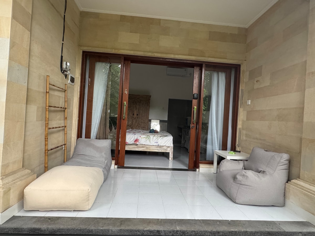 Cozy 1 BR apartment located on the 2nd floor. Bright and airy space features big windows that let in plenty of natural light, creating a warm & inviting atmosphere. Enjoy a smart TV, a convenient layout & a peaceful environment ideal for relaxation. Perfect for perfect for long or short stays with easy access to all of Kuta! 8 mins from the Ngurah Rai Airport, 7 mins by bike to Kuta & Jerman Beach 5 mins walk to Laota, 24 hours Chinese food 3 mins walk to convenience stores & eateries