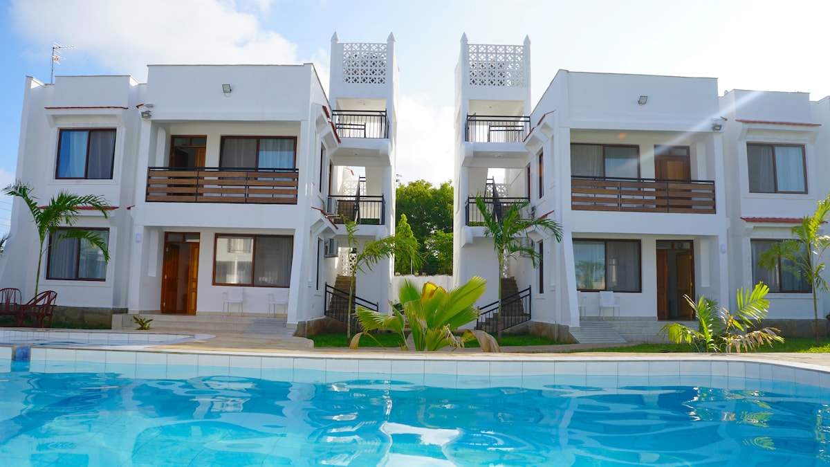 Welcome to Angaza House . A 1 bdrm apt in Shanzu in a quiet , serene environment with parking , AC , pool , restaurant , bar and greenery . It is —> 2 - 5 mins drive from Serena beach, Pride inn Paradise , Flamingo beach resort . Angaza is a Swahili word that means to light up / illuminate . Having been born and bred in the coastal city of Mombasa , the decor is inspired by the rich Swahili culture coupled with modern infusions.