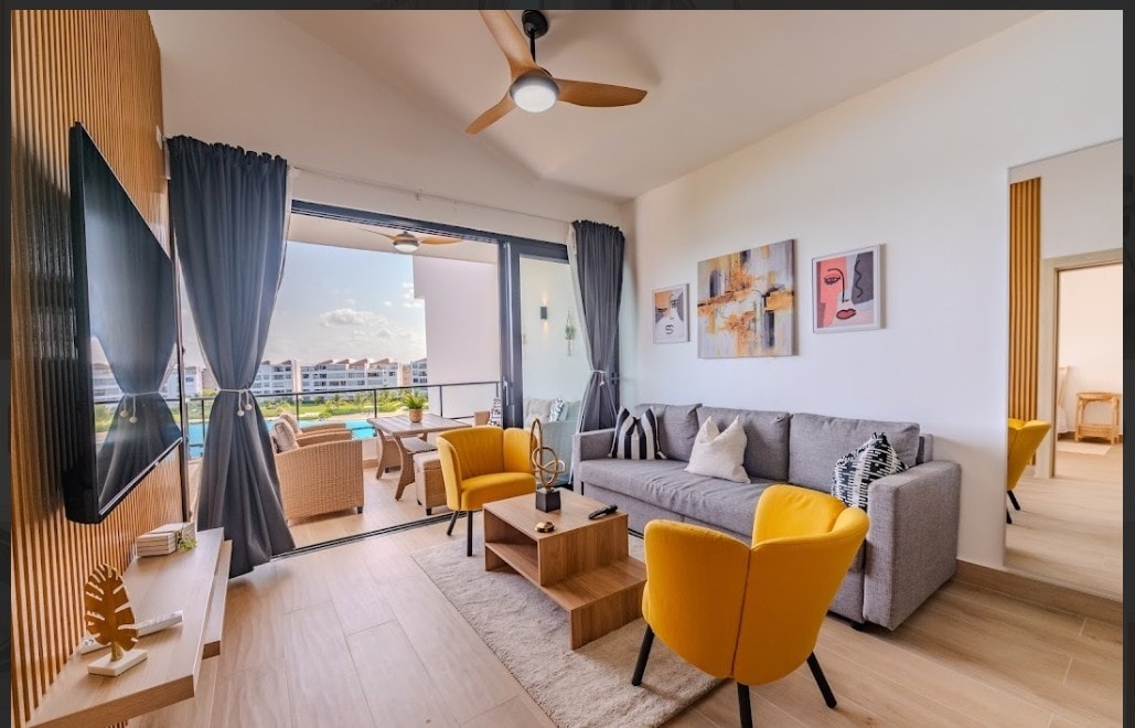 ¡Tu Hogar Lejos del Hogar! Comodidad y encanto en nuestro apartamento de una habitación ubicado a pasos del corazón de la acción en la exclusiva comunidad de Vista Cana. ¡Vista Cana! tal como reza su lema ¡UN MUNDO DE MOMENTOS! un paraíso tropical lleno de actividades y espacios para su disfrute, desde una cristalina playa artificial con agua salada, campo de golf iluminado, varias piscinas, lago para pesca, gimnasio completamente equipado, áreas para niños, scooters, kayak y restaurantes.