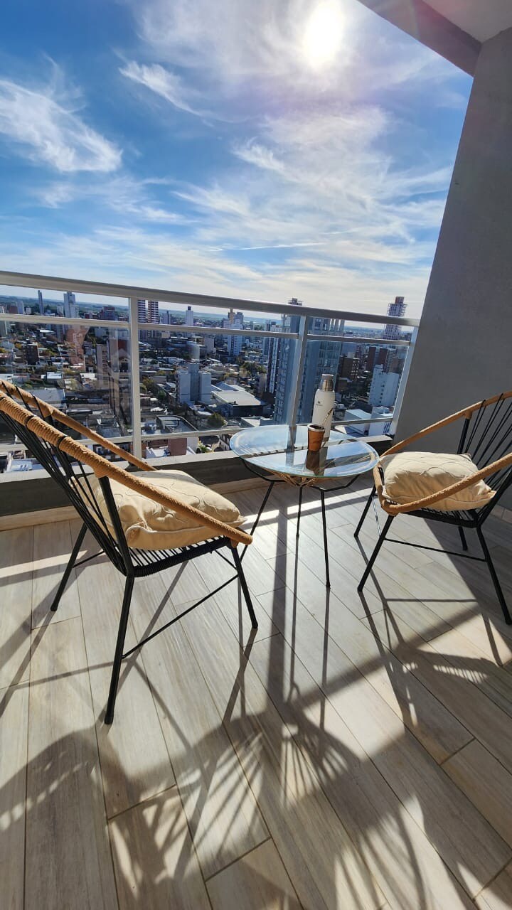 Modern, bright and fully equipped, this central apartment on the 13th floor offers a beautiful view of the city and access to the rooftop terrace with a swimming pool. It is furnished and includes all services (Wi-Fi and cable TV). Ideal location, just a few blocks from the main pedestrian street and the port, and right in front of a lovely square. Perfect for business trips, study stays or tourism. We look forward to welcoming you and making your stay in Santa Fe comfortable and enjoyable!
