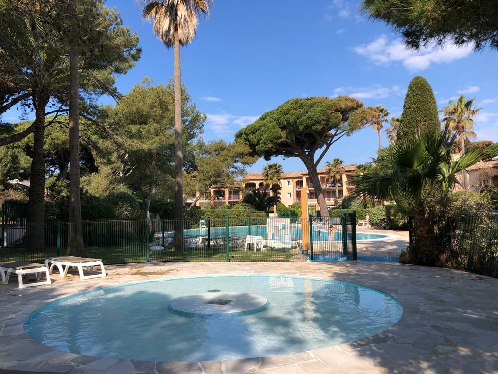 Appartement classé 4 étoiles dans une villa typique entièrement rénovée à 1200 mètres de la mer et du centre vielle dans un lotissement résidentiel et calme à Sainte Maxime. - Piscine 500 x 300 privative avec assise jacuzzi (spa) - Grand jardin arboré de 400 m2 - Literie et draps d'hôtellerie neuf - Climatisation, Wifi, BBQ, cuisine équipée .. La villa comprends 2 logements avec 2 entrées privatives. Chaque appartement comprend ses propres espaces privatifs (piscine, spa, cuisine, BBQ, etc.).