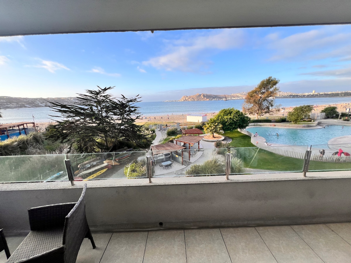 Espectacular apartamento con vista al mar en playa La Herradura,. Conexión directa a la autopista, con estacionamiento, a 3 minutos caminando de la playa, cruce seguro (puente peatonal). A pasos de restaurantes, supermercados, farmacias y otros comercios. Incluye las sillas de playa para que puedas ir cómodamente a la playa en familia. Acceso a piscina, gimnasio y quinchos dentro del recinto. *Actualmente hay una construcción al lado con ruido en horario laboral*