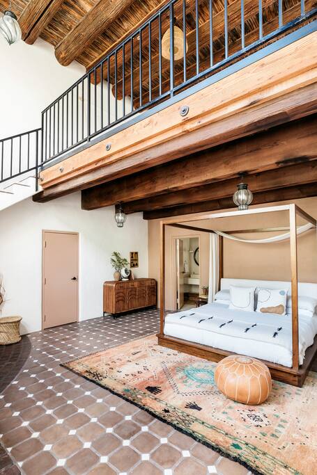 Welcome to the Agave Suite—a quiet desert retreat within JTH Tucson, a 7-room inn. Tucked against the west side of Saguaro National Park, this private suite offers a peaceful base to slow down, reflect, and connect with the beauty of the Sonoran Desert. This is an upper level suite (accessed by stairs) featuring a queen bed, bathroom, fireplace, kitchen, balcony, and TV. Ideal for up to two adults and one infant—this space blends handcrafted details with the warmth and quiet of desert life.