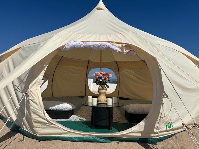 Imagina despertar en el corazón del desierto de Baja. Pasa la noche en una tienda de glamping con colchón matrimonial y baño privado al aire libre. Disfruta una ducha caliente bajo las estrellas, cocina en la cocina exterior o déjanos cocinar para ti! Trabaja rodeado de paz, cactus y silencio. No es solo un lugar para dormir, es un espacio para reconectar, respirar profundo y recordar lo simple y bello que es vivir. ¡Baja te espera!