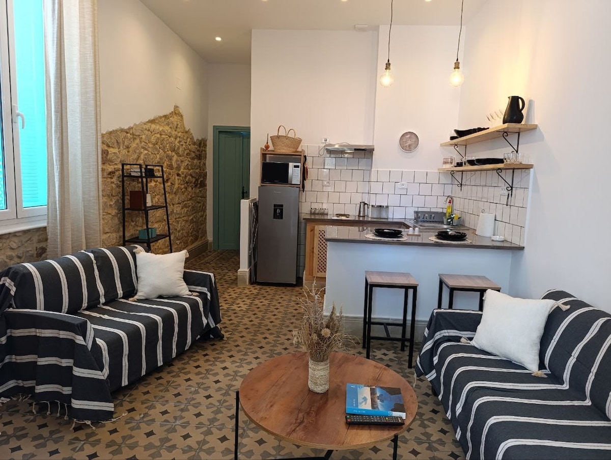 Au Cœur de Sidi Bousaid, un Appartement typique, paisible et confortable, situé à 5mn à pied de la gare qui relie Sidi Bou Said, La Marsa, Carthage et La Médina. tous les lieux de renommé à Sidi Bousaid, musées, restaurants, café des nattes, café des délices... sont visitables à pied. Richement équipé et doté d'une décoration typiquement Tunisoise agrémenté d'articles traditionnels et authentiques. Dispose aussi d'un espace extérieur commun pour un paisible café ou un barbecue...