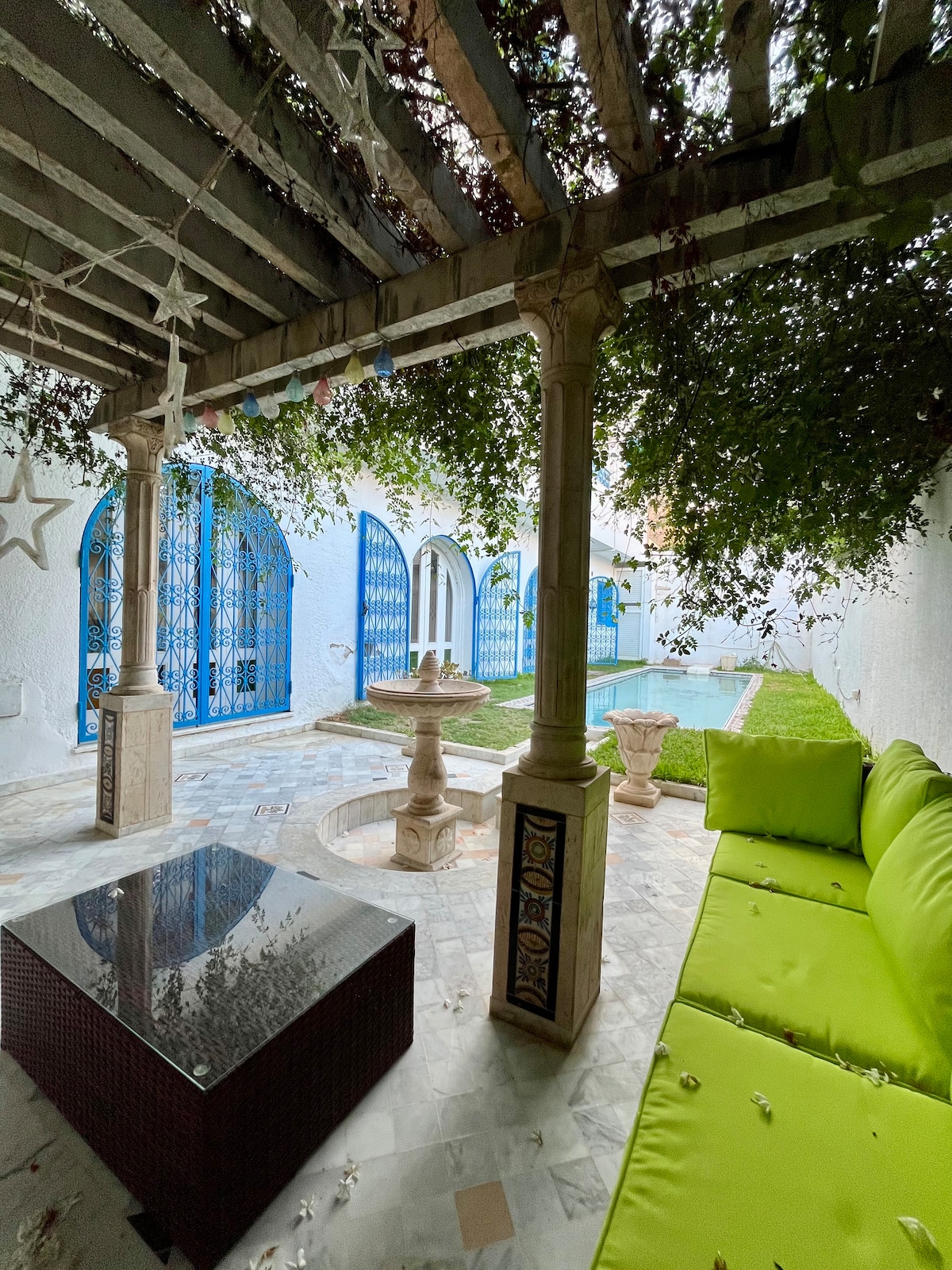 Appartement authentique à La Marsa avec piscine privée. Alliant charme traditionnel et confort moderne, il comprend une suite cosy, un salon lumineux, une cuisine équipée et un jardin verdoyant. Idéalement situé, à proximité des commerces et des lieux emblématiques de La Marsa, c’est le lieu parfait pour un séjour paisible, relaxant et plein de caractère.