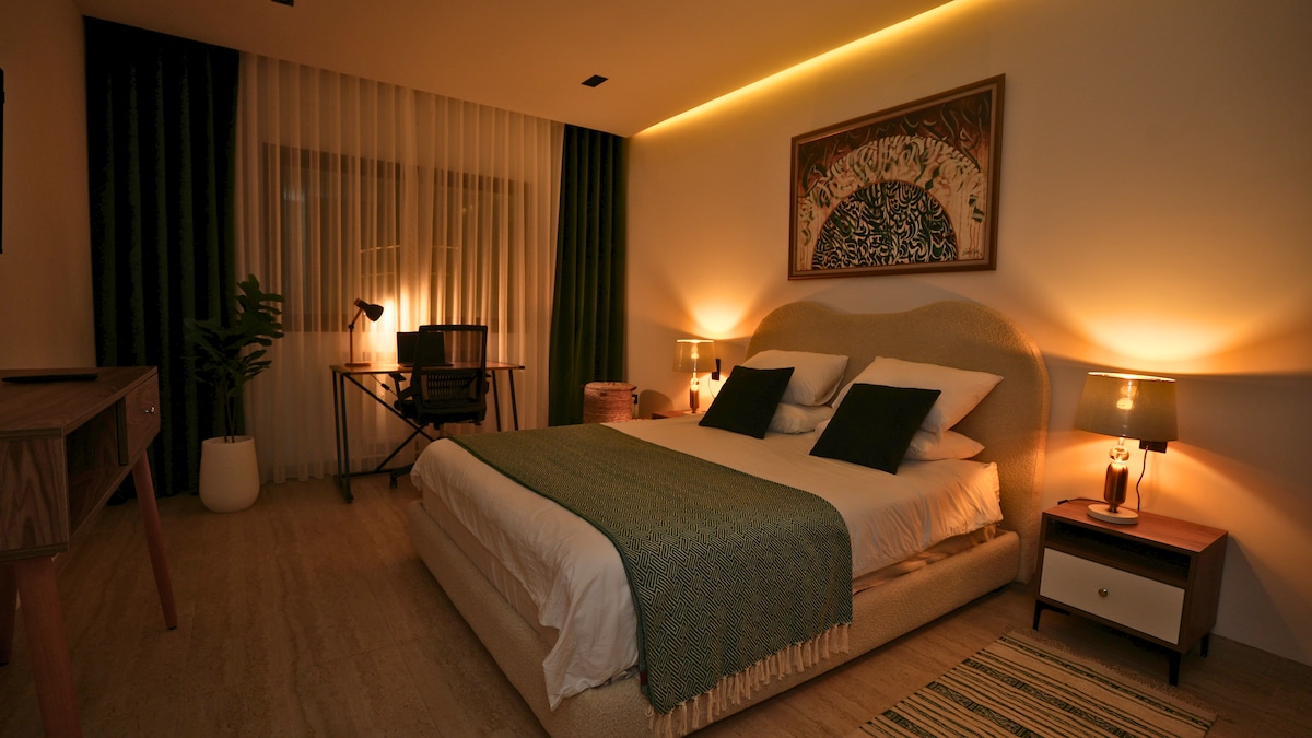 Profitez d'un logement élégant et central au cœur de Ain Zaghouen Nord- banlieue chic- 10mn de l'aéroport et de la marsa. notre suite douceur Oranger est situé à l'appart Hôtel Green Suites Tunis bénéficiant d'une piscine au rooftop et une salle de fitness...