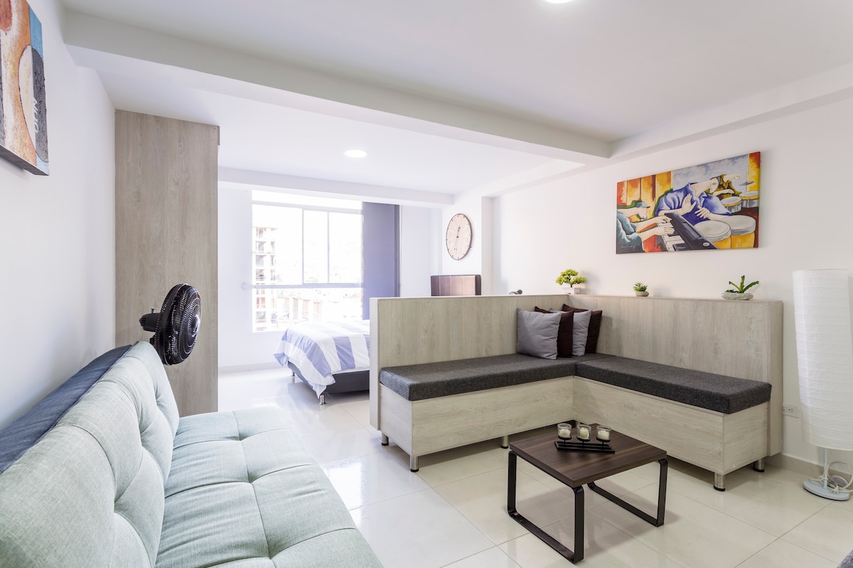 A very well located apartment studio a perfect fit for a couple, a family of four or a single person. This espace is near the Travia (Street Car) which connects to the metro and metrocables (the tramsp). Very close to supermarkets and the best, close to nice and cheap restaurants. Aparta estudio perfecto para una pareja, para una familia de cuatro personas o para una sola persona. Este espacio esta cerca del Tranvia. Muy cerca a supermercados y lo mejor, cerca a restaurantes buenos y baratos.
