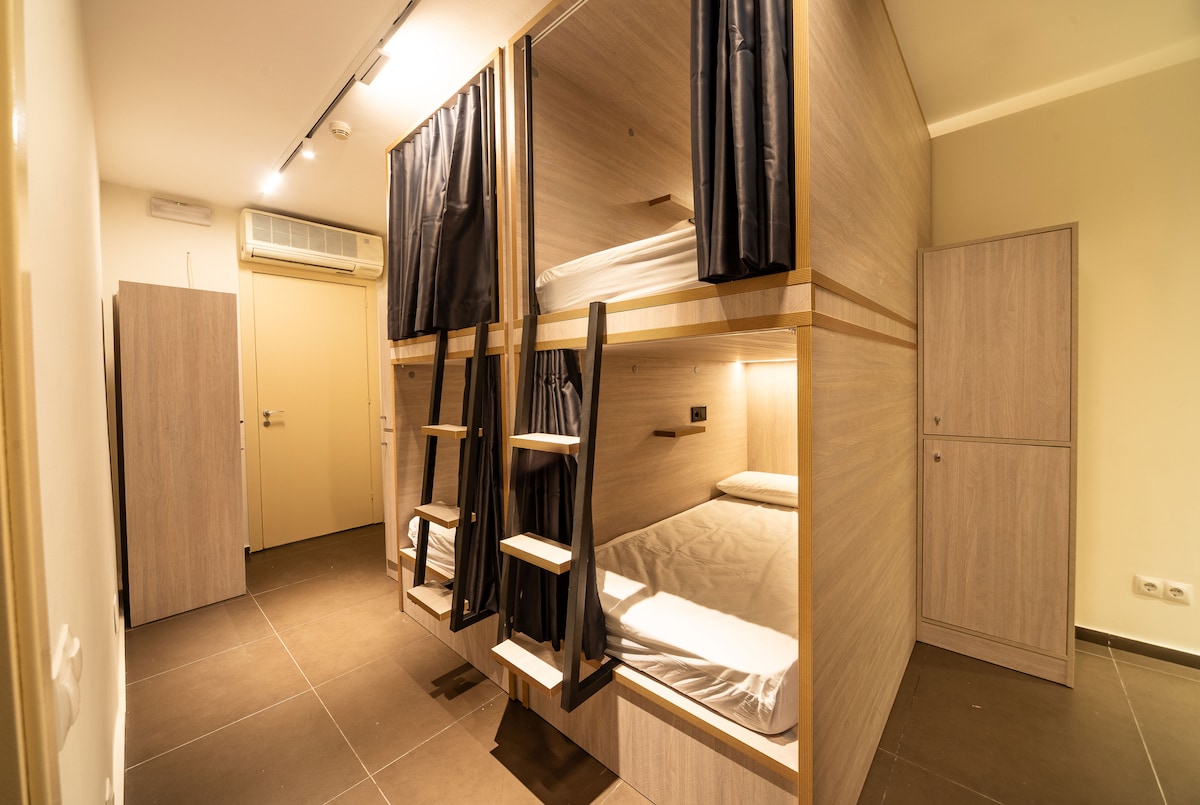 Cozy double room. This bright room features a double bed, can be with balcony and balconette (small, without table or chairs). There is a shower and sink in the room. The bathroom is shared. The hostel provides towels and bedding. Note: Balcony may be walkable or Juliet style. Preferences considered but not guaranteed. The photos are for illustrative purposes only and may not exactly match the assigned room, although the reserved features will always be respected.