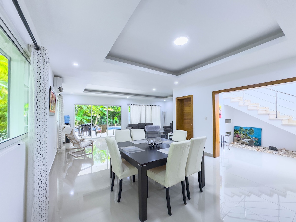 Welcome to Casa Mirtha, a luxurious golf villa in Casa de Campo, Dominican Republic. This stunning retreat combines modern elegance with Caribbean charm, overlooking Casa de Campo's renowned golf courses. Casa Mirtha offers spacious indoor and outdoor areas, perfect for gatherings and relaxation. Inside, enjoy airy rooms filled with natural light, high-end amenities, and tasteful decor. The villa also features a private pool, ideal for cooling off or unwinding under the Caribbean sun.