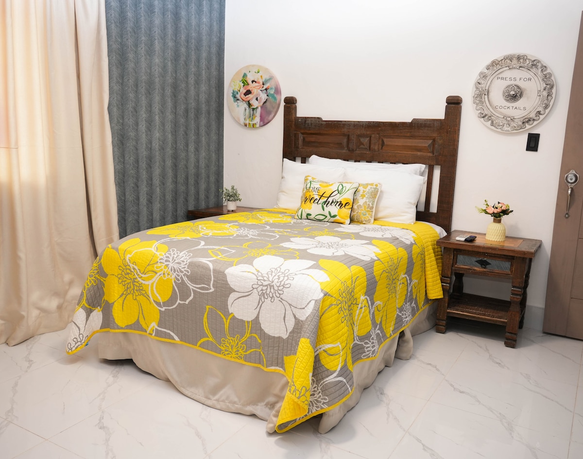 Siéntete como en casa en este coqueto apartamento de una habitaciones con camas queen size. Aire acondicionado, una cocina completa en la cual puedes hacer tu cafe favorito en la manana y una tv en el aposento donde disfrutarás de tus programas favoritos y amplia cobertura de internet. Está a 5 minutos del Multiplaza de la Romana, 10 minutos del supermercado Jumbo y 5 minutos de la Playa Caleta. En este alojamiento céntrico todos podrán disfrutar del fácil acceso a todo.