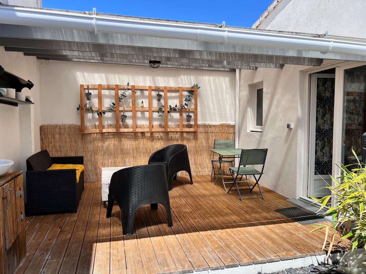 Logement situé au 1er étage,en plein coeur de station et à proximité du marché.Plage familiale et vie nocturne sont à parfaite bonne distance pour n'en avoir que les avantages.Accès extérieur indépendant.RDC: espace clos,terrasse.A l'étage : entrée du logement,ceint de 2 grandes terrasses.Vous apprécierez ce logement pour sa luminosité,ses équipements de qualité et ses espaces extérieurs qui vous permettront de passer d'agréables moments de détente.Logement parfait pour couples et familles.