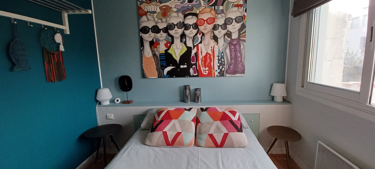 La chambre est située au 1er étage dans notre maison "La Novia", avec accès indépendant. La chambre dispose de prestations de qualité afin de prendre vos petits déjeuners et repas, table et 2 chaises, réfrigérateur d'hôtellerie, machine à café Nespresso, bouilloire, micro-ondes et vaisselle. TV, Canal+. Coffre fort. WI-FI gratuit. Attention !!! Les petits déjeuners ne sont pas proposés (boulangeries et Carrefour City à 100 m). Linge de toilette et de lit fournis. Lit (160) fait à l'arrivée.