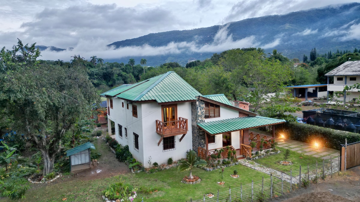 Es una casa a acogedora y sencilla que tiene un patio lleno de flores y frutas y que además tiene acceso a al rio bayguate y al charco don pedro...