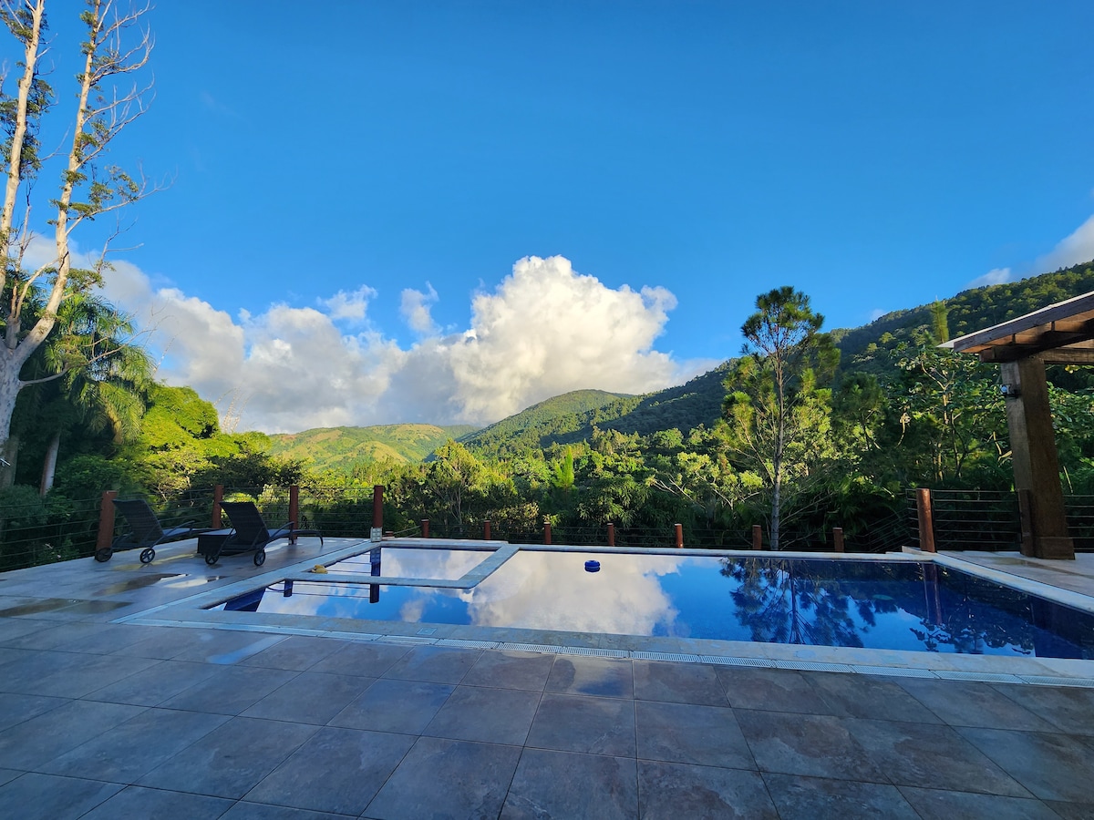 DISCOVER THE PERFECT MOUNTAIN RETREAT FOR FAMILIES AND GROUPS AT OUR SPACIOUS HOME. - Breathtaking Views - Private Gazebo with BBQ and Heated Pool - No 4x4 Vehicles Needed - Pet Friendly - High Speed WIFI - Indoor Fireplace - Fully Equipped Kitchen - Scenic Dining Room - Parking Space for 4 cars - 50" HD TV with Netflix, Youtube, etc. - Location is ideal for practicing hiking and mountain biking, you can get around safely within Jarabacoa.