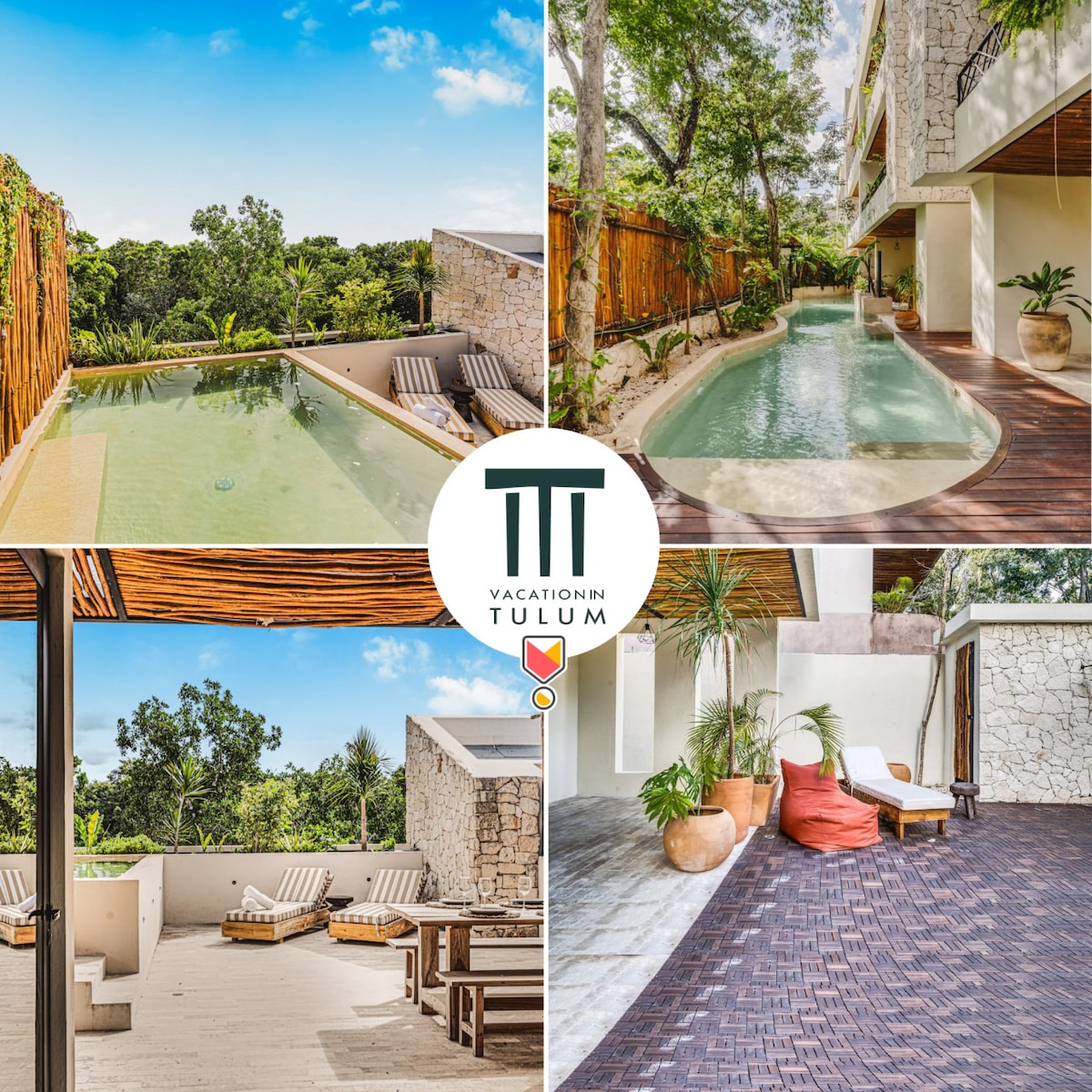 Welcome to our 2x1 penthouse, there's the rooftop area with a private pool, perfect for groups of 2-4, we in the best area of Tulum, Veleta our place is within walking distance from restaurants, bars, coffee shops, 5 min to city center, 10min to the beach, 30min to Tulum airport, fast wifi and desk for digital nomads, We also have a saltwater heated pool, fire pit, and yoga area within the condo complex. Designed for comfort and convenience, you'll have the best experience.