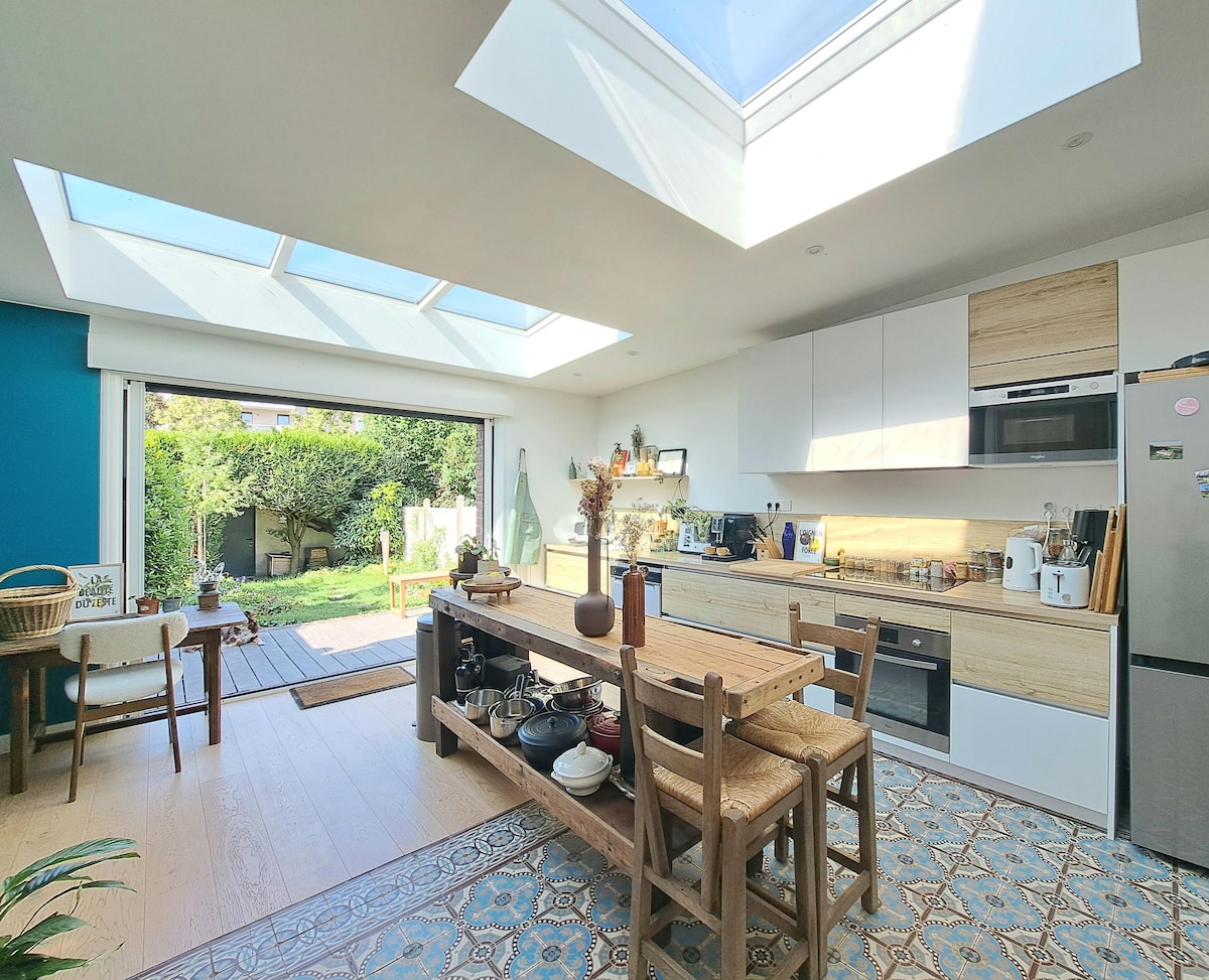 里尔明亮的房子,舒适的花园和露台