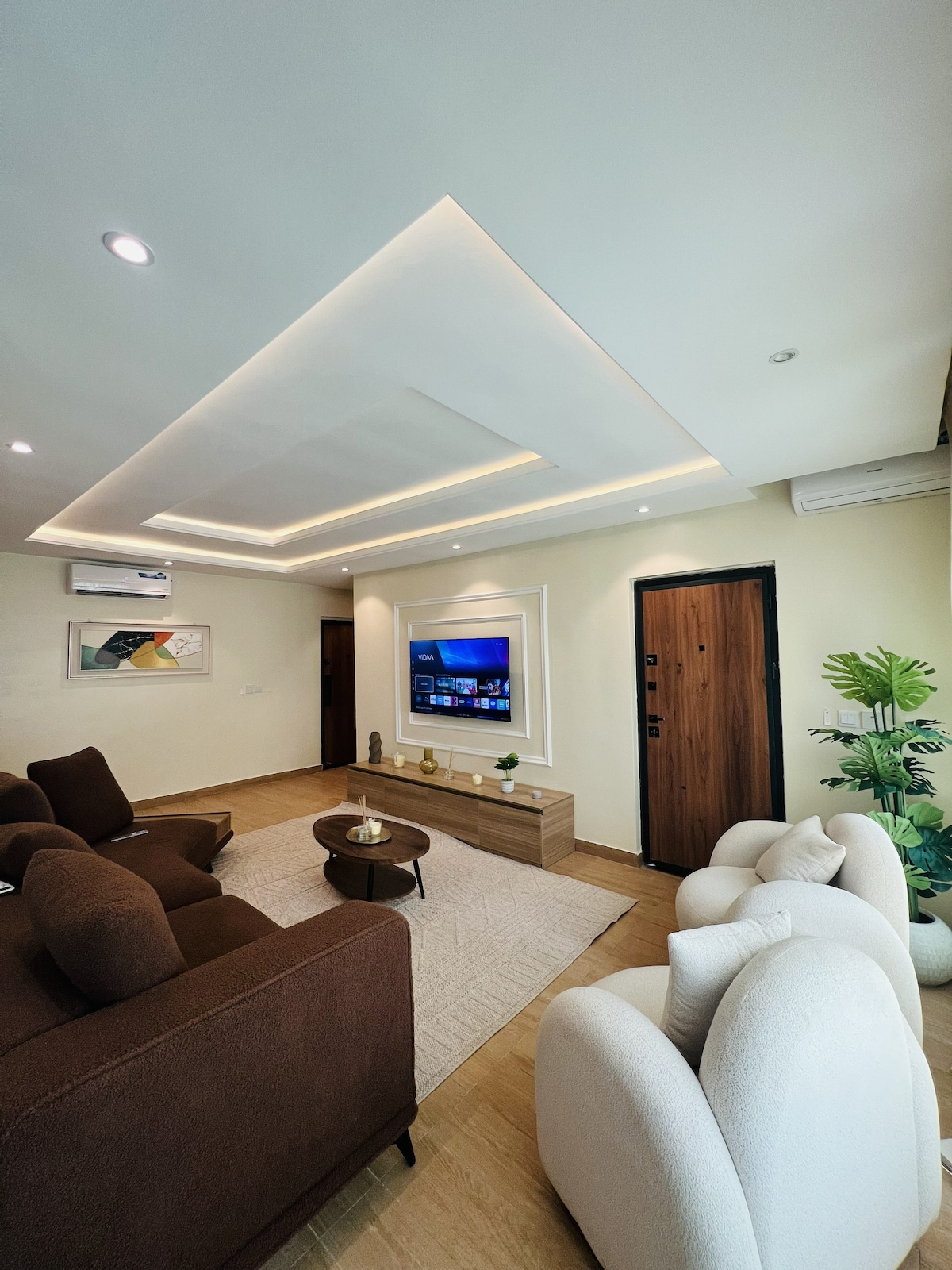 Escape to comfort in this stylish 4-bedrooms, 4.5-bath apartment in Oniru Estate, Victoria Island, Lagos. Enjoy a spacious living room with soft sofa, AC, Wi-Fi, Smart TV with Netflix, and a cozy dining area. The fully equipped kitchen has everything for home-cooked meals. Each ensuite bedroom offers comfort and privacy. Perfect for families, business travelers, or groups seeking luxury, convenience, and 24/7 security in one of Lagos’s most sought-after neighborhoods.