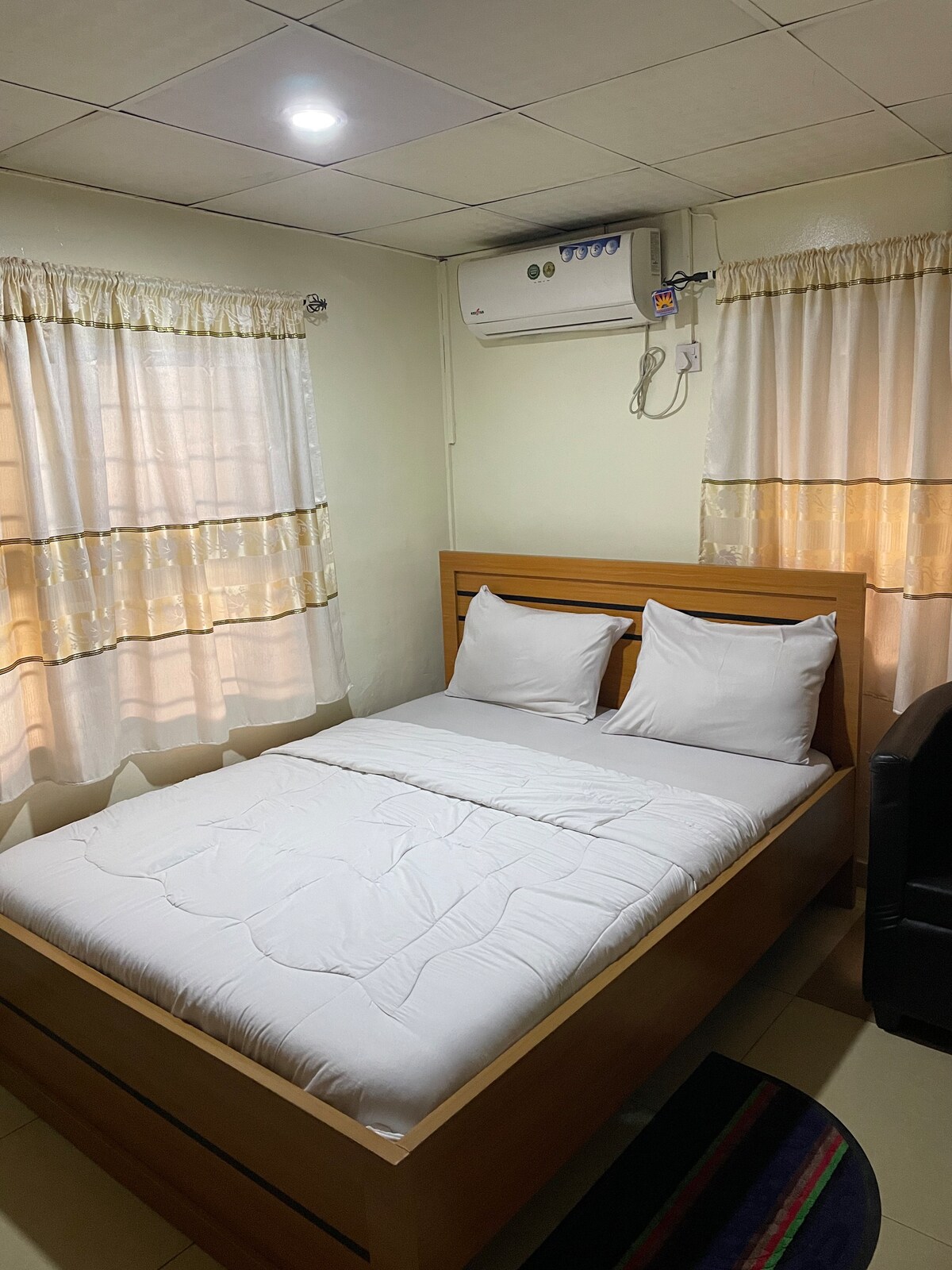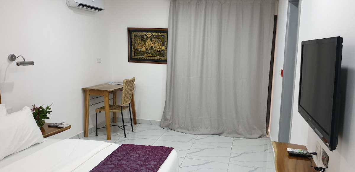 A cozy, private and peaceful space with a patio in front. close to the ocean so very breezy and relaxing in the evenings. Centrally located, 5 minutes away from the business district of Victoria Island and Social District of Lekki. Owner offers interesting options including request for laundry, cleaning, groceries and even meals. on request, long staying guests can also have access to the kitchen in the main house through an adjourning door without having to enter the main house.