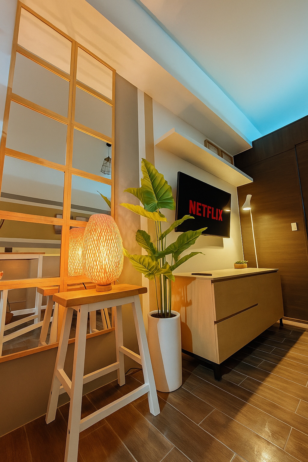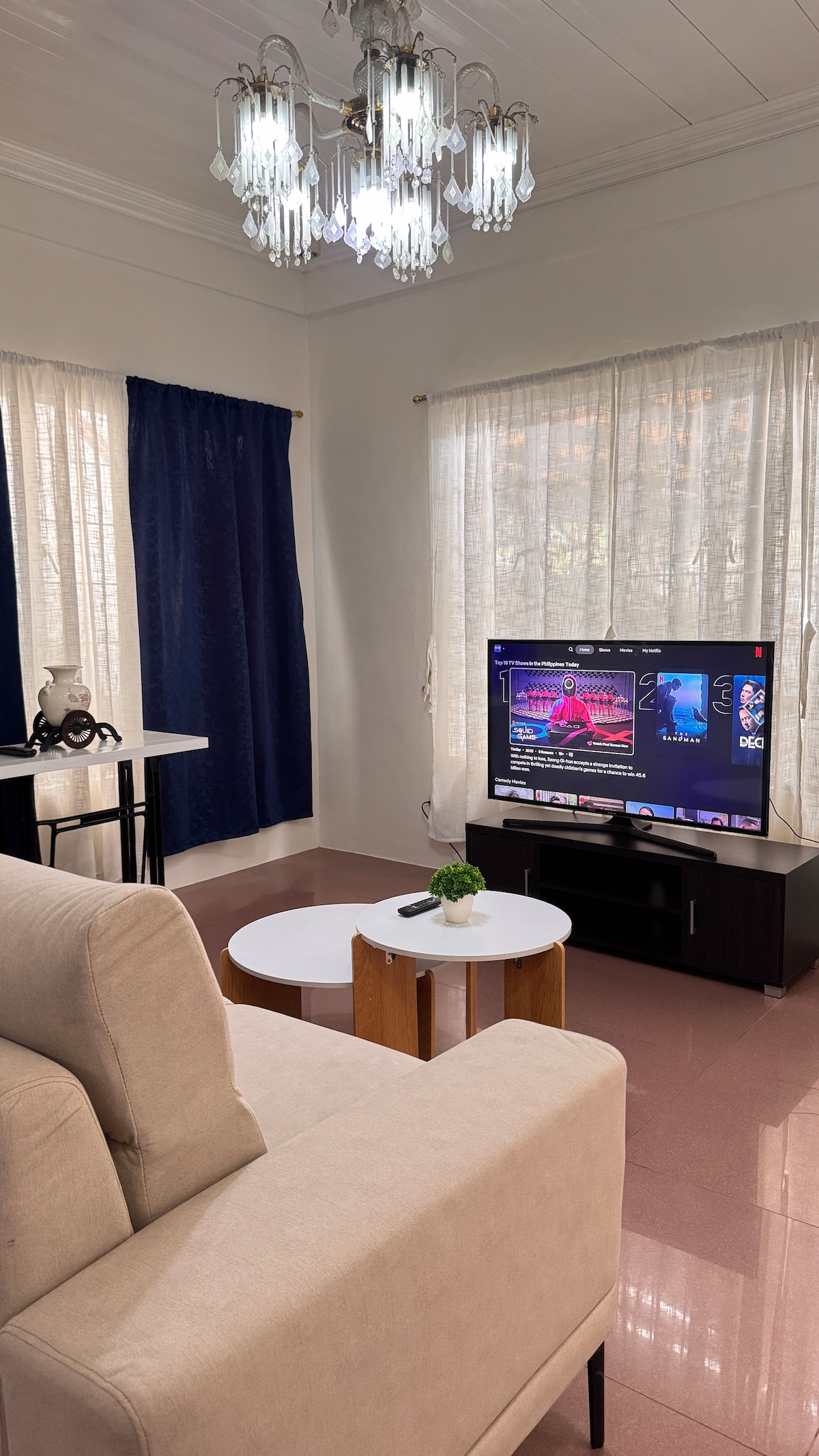 The unit is new, has all the amenities like 50 Mbps WiFi, sound bar and PlayStation with access to Netflix, HBO Max and Prime Video,the location is near to the following Government offices, DENR, DPWH, and Camp Vicente Lim. Room is equipped with air-conditioner and Sharp Plasmacluster air purifier with built in mosquito cluster..