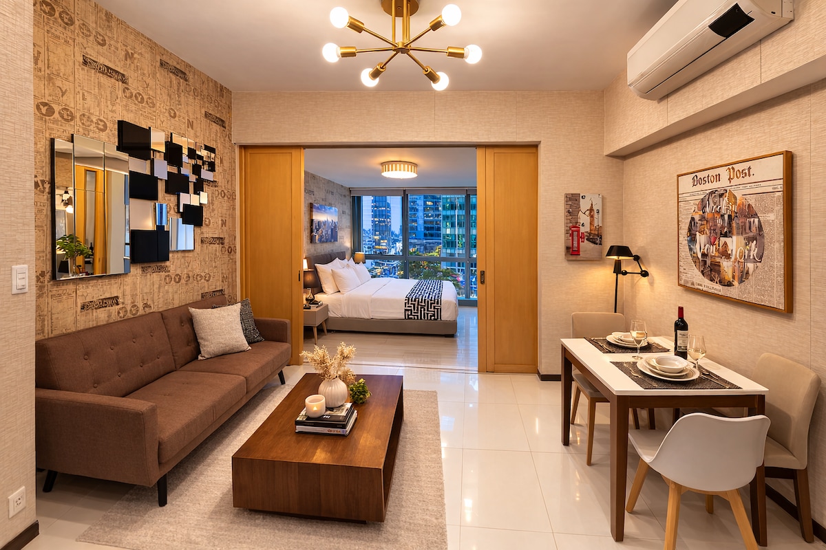 位于BGC上城区的舒适北欧风格1卧室公寓,带阳台+快速无线网络