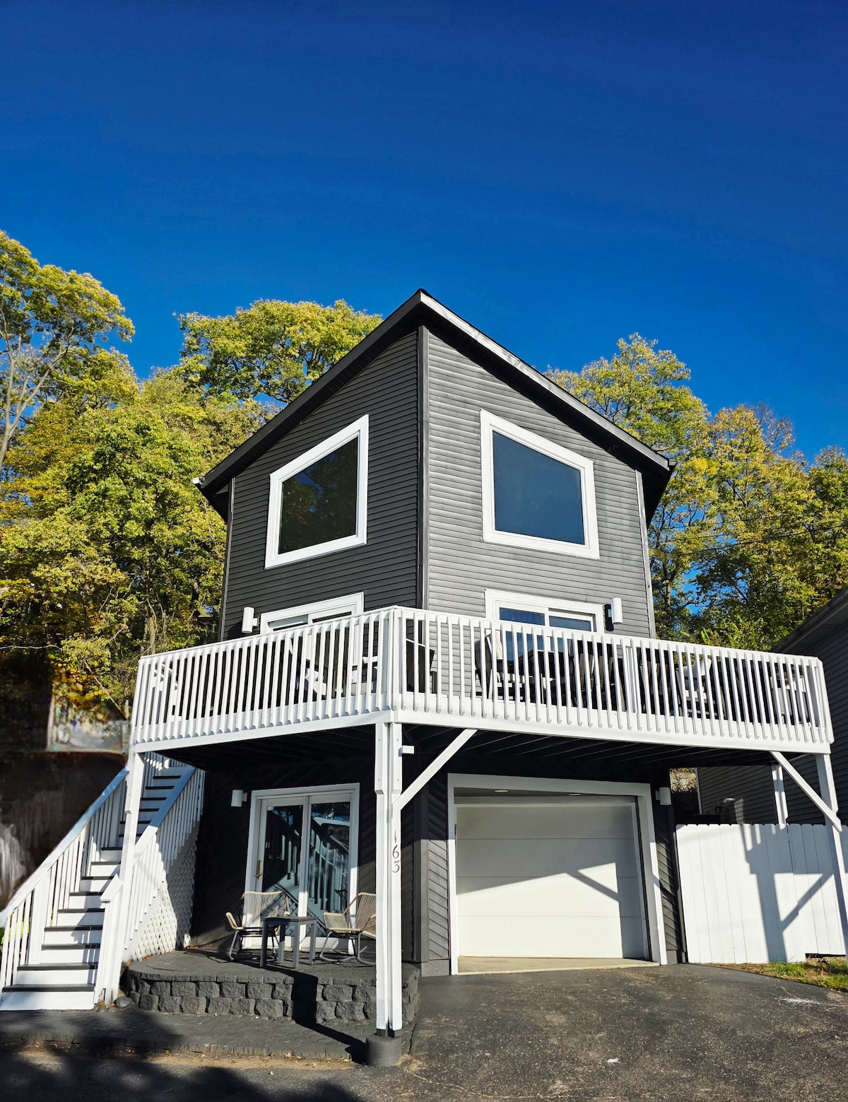 Fish, boat, swim, and enjoy Lake Life right from your backyard at “The Lake House on Myers Bay.” Escape to your own waterfront retreat at this 3-bedroom, 2-bathroom lakefront home on Myers Bay in Fox Lake, IL. Perfectly situated on the famous Chain O’ Lakes, this property combines the charm of a resort setting with the exclusivity of private amenities that are yours only. Enjoy a spacious deck, your own sandy beach w/ sun loungers, and a private pier where you can fish, swim, or dock your boat.