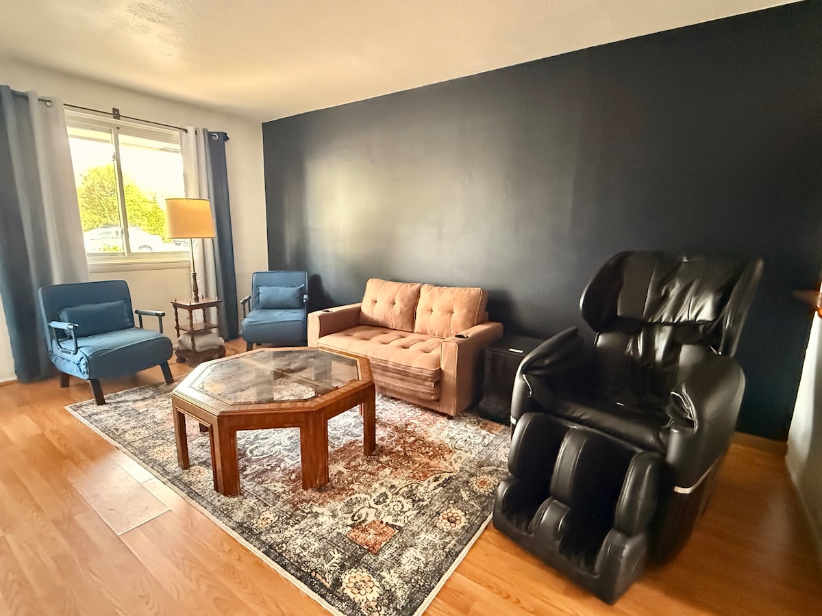 The apartment is above a detached garage. The spacious floor plan is modern and fresh, with your own garage spot, on-site laundry, a full kitchen, walk-in closet and large private bathroom, this apartment feels just like home. Long term lease is available for a discounted rate. The apartment is located on a busy street (“busy” for a small town) you will hear cars and motorcycles drive by. Please take this into consideration when booking.