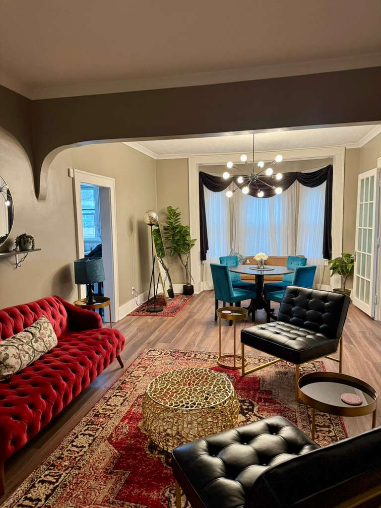 Enjoy a clean and stylish experience in the Juni Suite. Cook all your meals in the well equipped kitchenette, soak it up in the deep bathtub, and stay warm by the fireplace. A queen size memory foam bed and blackout roller shades will help you sleep soundly. The convertible sofa is easy to expand to a full size. Protect your vehicle in the off-street covered parking stall which is only a short walk to the entrance (7 stairs up and 13 down). Close to Union College/Shops.