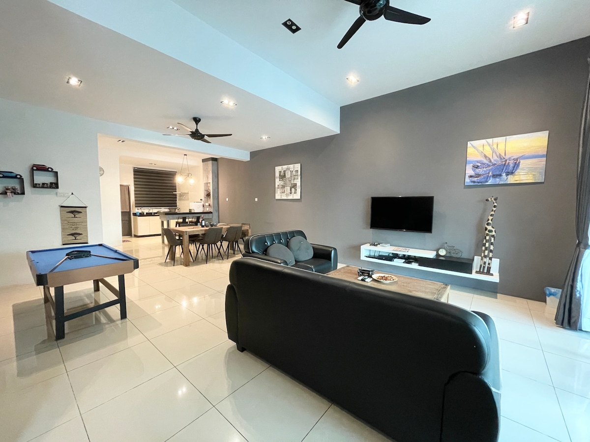 This double-storey townhouse is located in the heart of Langkawi, offering a prime location with convenient transportation. 26-minute drive from the airport and an 8-minute drive from Kuah Town Jetty and duty-free shops. 4 bedrooms and 4 bathrooms,accommodating up to 11 guests. All bedrooms and the living room are equipped with air conditioning. We are committed to providing a clean and tidy living space to ensure the best experience for each guest.
