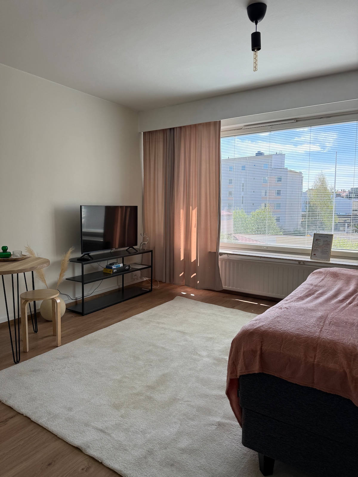 Enjoy a relaxing stay in this cozy two-room apartment with private sauna, just minutes from the city center yet in a quiet area. Sleep well in the flexible bedroom (double or two singles) and use the sofa bed for extra guests. The home is fully equipped with modern comforts: dishwasher, washing machine, dryer, microwave, coffee/water kettles, toaster and free WiFi. Warm floors, sauna and key box add convenience. Private parking space with heating outlet right next to the apartment is included.