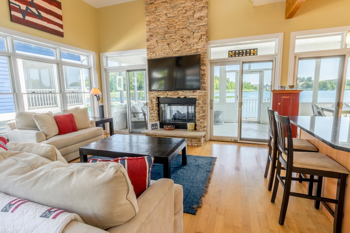 Looking for a relaxing lake vacation? Our studio home is directly on the water with docks to offer for guest use during warm months. Great fishing spot with included kayaks and seasonal pontoon boat to explore on the lake. Our gas fireplace on the deck provides amazing memories and relaxation. Gas grill, outdoor furniture, clean space to swim between docks, and so on! Wifi, streaming networks, and board games provided in home! Pine Lake Airbnb is the place to be for your next vacation adventure!