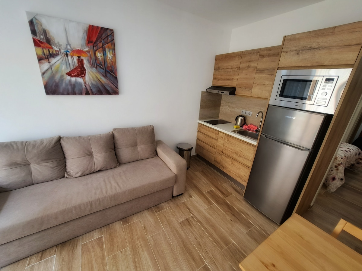 Welcome to our newly refurbished one-bedroom apartment, complete with a private terrace. This charming residence has been meticulously designed and furnished to offer an exceptional experience. The apartment boasts modern amenities, a fully equipped kitchen, and a cosy living area, ensuring every comfort is met. The private terrace provides a serene outdoor space, perfect for relaxing after a day of exploring. Every detail has been thoughtfully considered to make your stay unforgettable.