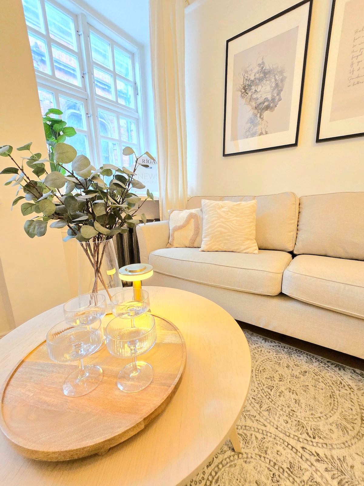 Enjoy a comfortable stay in this thoughtfully designed one-bedroom apartment, set in a historic 1930s Modernist building. Carefully renovated to preserve its original charm, the space is bright, inviting, and enriched with artwork by talented Latvian artists. Whether you're visiting Riga for work or leisure, this apartment offers a warm and well-equipped home base—perfect for solo travelers, couples, or parents with a baby.