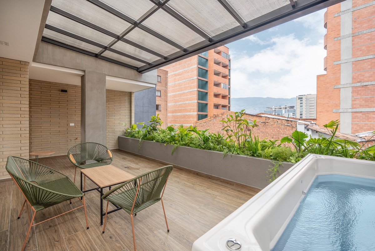 This is one of a kind apartment/house with everything you have ever dreamed of having in a home. Centrally located near all of the best places to eat and hang out in Laureles. The apartment is a 3 bedroom / 3 baths and has a large outdoor space equipped with a hot tub, beach chairs, bbq and a reading net. The terrace is exclusevily designed for guests to enjoy their stay at its maximun. This apartment was designed by some of the best architects who created a concept with local materials and art