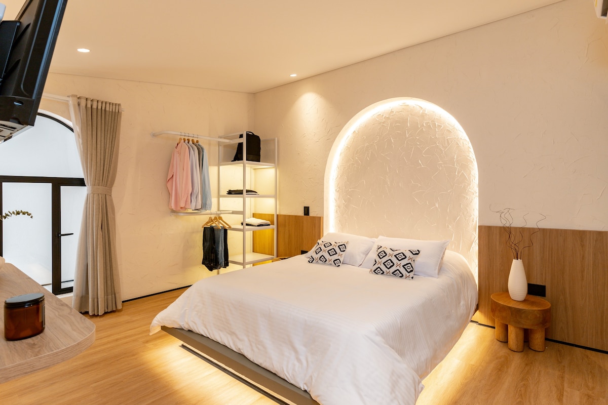 黄金地段,配备私人按摩浴缸、空调、加大双人床