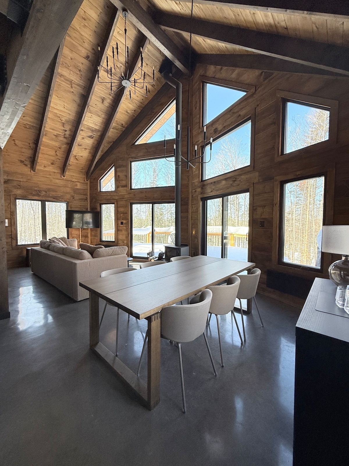 Le Chalet Le Fidèle, situé dans Lanaudière, une nouvelle construction moderne, directement au bord de l'eau, est un endroit pour ralentir, déconnecter et passer du temps de qualité avec la famille et les amis, dans un endroit paisible et inspirant. Cette luxueuse habitation d'inspiration scandinave, a été conçue en préservant la magnifique vue sur le lac qui vous éblouira dès votre arrivée. Le chalet est équipé avec tout ce dont vous avez besoin pour passer un séjour inoubliable!