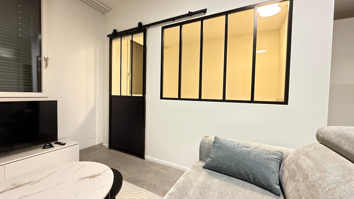 Spacious and modern apartment located 12 minutes from Lausanne city center. Very quiet residential area, 2 minutes from the metro. Large, bright living room and open kitchen with a balcony. View of the Alps and Lake Geneva. 75" TV. Office with a workstation and fitness equipment. A large master bedroom with a king-size memory foam bed. A second large bedroom with a queen-size bed. Two bathrooms (1 with a bathtub, 1 with a shower). A private covered parking space.