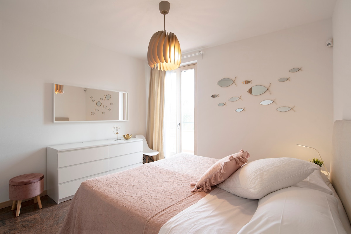 Amazing single little villa, just totally renovated , located 100 meters from the shore of the lake, stands out for its particular style. Inside there are a living area connected directly to the outside with two sliding doors, a small but well-equipped kitchen, two double bedroom with direct access to the garden (one of which with private bathroom), a bedroom with bunk bed and a bathroom with shower. If necessary 8 places, there is a sofa-bed in the living room.