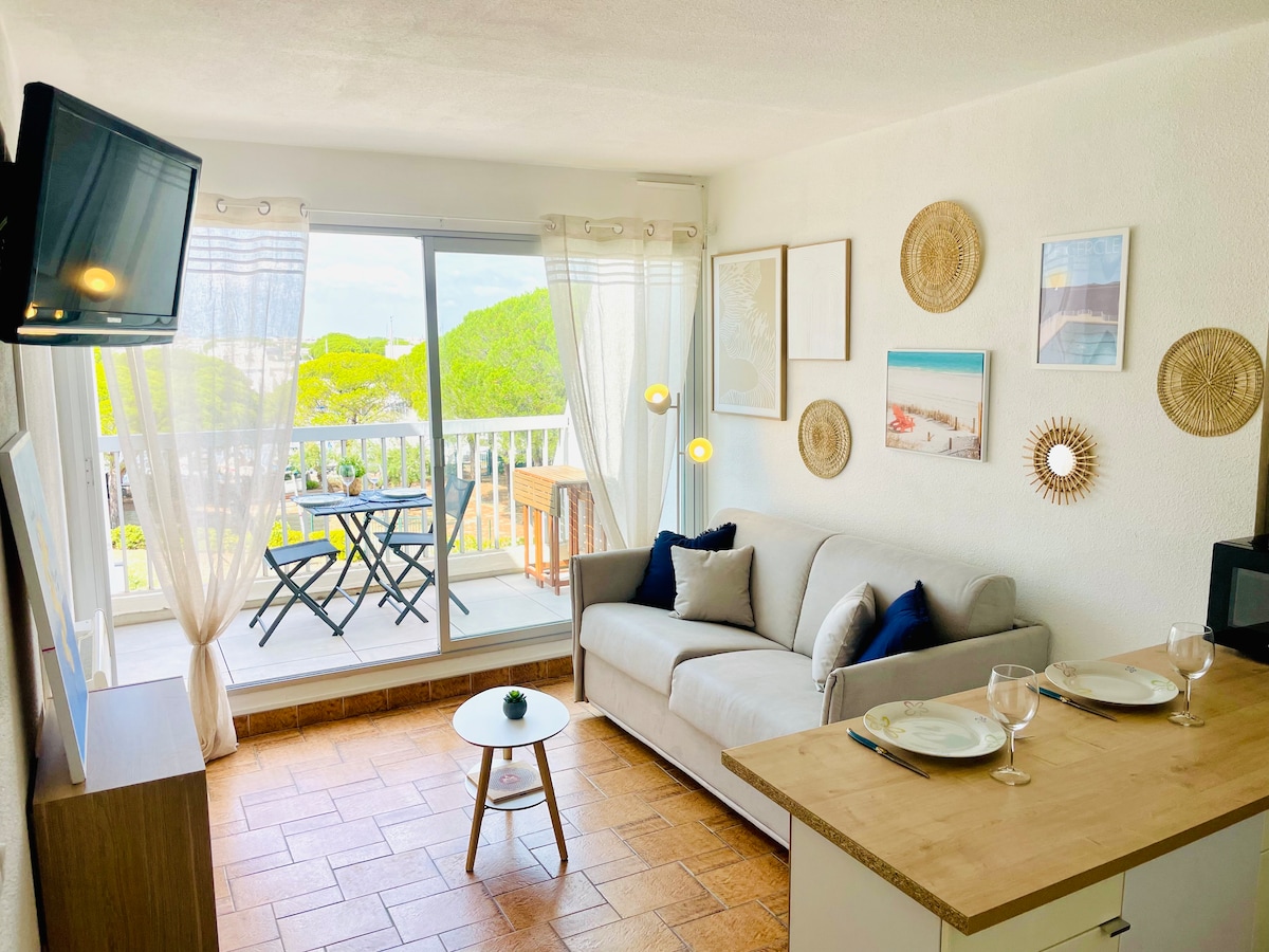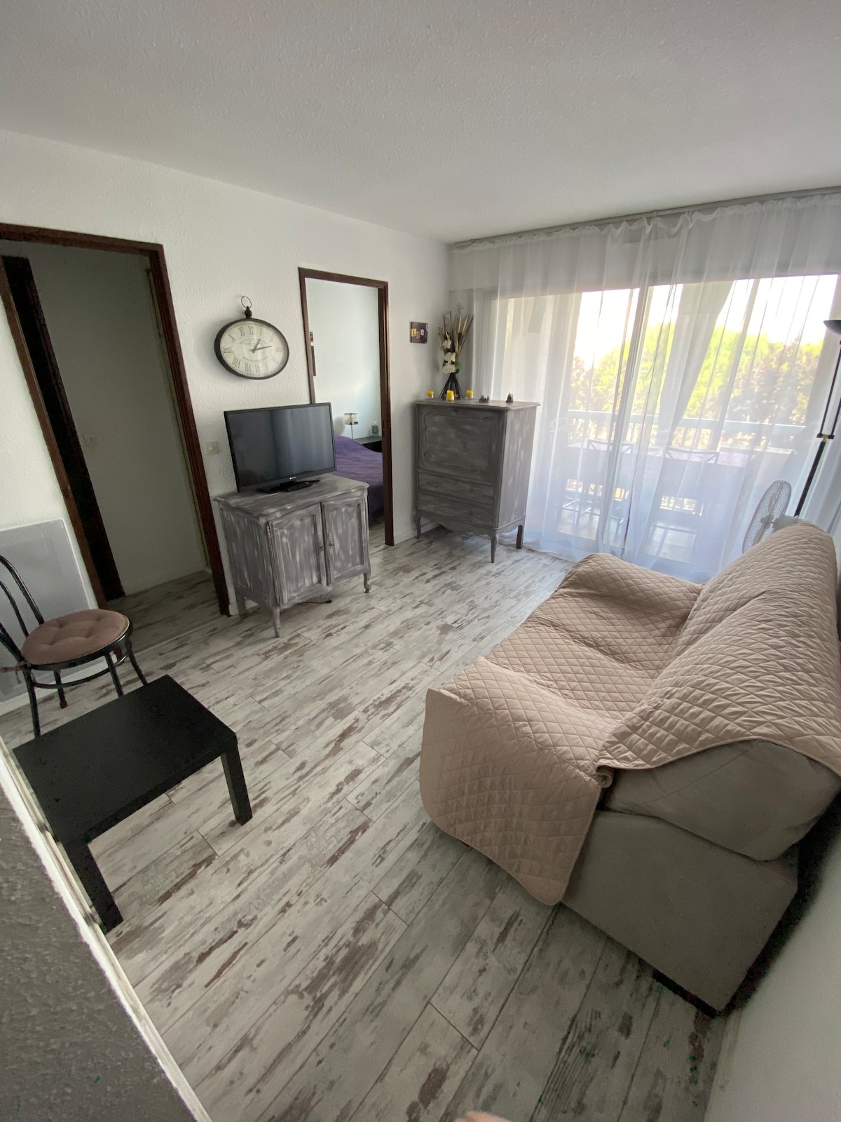 Au Boucanet, Studio cabine climatisé refait a neuf Sept 2023 comprenant 4 couchages et situé à proximité de la plage, au premier étage, avec place de parking privée et numérotée. Studio cabine comprenant canapé convertible et lits superposés, cuisine, salle de bain/wc et balcon. Machine a laver et lave vaisselle. Camargue village est une résidence sécurisée joliment arborée comprenant jeux de boules, elle est située à proximité de la plage avec portillon d'accès. *linge de lit/bain non fourni