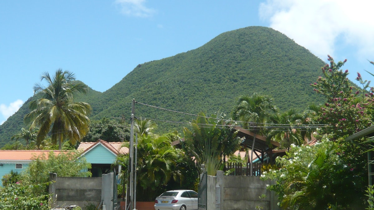 Coupled bungalow situated on a property with garden in a quiet residential lot. Come to relax a few steps away from the beach in a peaceful little town. Every bungalow offers you all the necessary services to spent unforgettable holidays in Martinique. The evening, the noise of the sea will rock you. Ideal for a couple with its double bed, its outside kitchen area, its bathroom with shower and toilets, your bungalow is completely equipped (tv, air conditioning, internet in WiFi, coffeepot...) and the linen (sheets and bath towels) is supplied to you during the duration of your stay. A washing machine is available outside for both bungalow. The creole garden which surrounds bungalow will allow you to discover a part of the flora of the island. Starting point for the ascent of the Mount Larcher , the municipality of the Diamant will surprise you by the wealth of its landscapes. Your hostess, Emmanuelle, will indulge to welcome you on her island and will make all that it is necessary so that you had a pleasant stay.