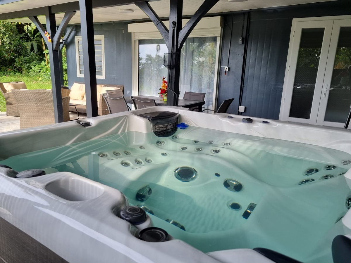 Quiet, romantic 2-room apartment 105 m2, intimate with its private "pool house" space, just for you whith: spa, swimming pool, barbecue, plancha, Ping Pong and relaxation area. All in a green setting with a panoramic view of the Caribbean Sea, Mount Pelée and the bay of Fort de France. Restaurants and shops are 2 minutes by car from Bourg des Trois-Ilets and the most beautiful beaches are 10 minutes away.: The best geographical location for visiting the island. Closed parking. Fiber internet