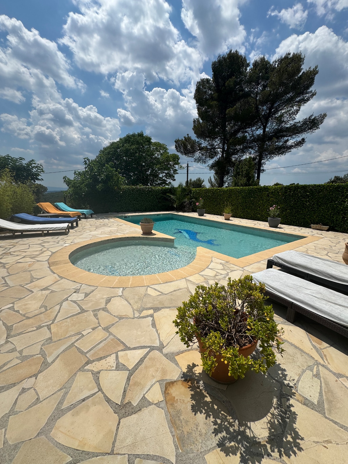 Maison de 170m2 composé de: 3 chambres de 10 à 12m2 1 salle de bain et WC séparé 1 suite parentale avec douche italienne, double vasque et WC 1 cuisine totalement équipé de 12m2 une piéce de vie de 50m2 Piscine de 8m sur 4m Pool house avec WC, douche, lavabo grill plancha Situé à 40 min de la Mer, et 80km de l'aéroport de Nice. Je reste à votre disposition pour plus de photos ou renseignements.