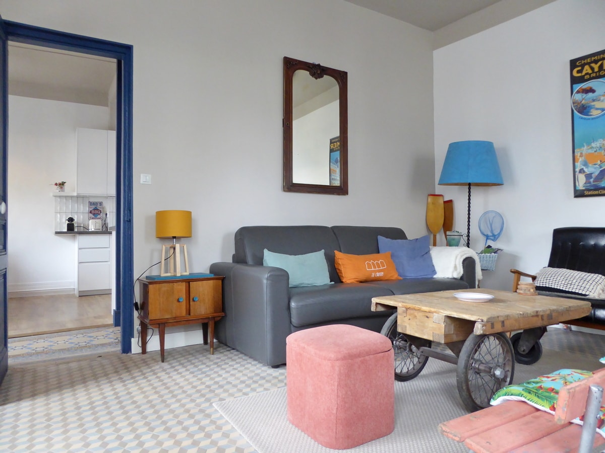 Maison individuelle avec un garage au rdc et 1 grand studio au 1er étage entièrement rénovée, dans le quartier des cordiers. Pas de frais de stationnement. Pour la petite histoire de ce lieu, au RDC le pêcheur stockait son matériel et quand il rentrait de la mer pendant la nuit, il dormait à l'étage au milieu des filets sur le parquet toujours là ! A proximité une boulangerie, supérette, laverie, restaurants et des commerces.