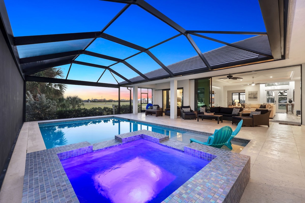 Are you looking to swim, relax outdoors, fish and take in beautiful sunsets on a wide gulf access canal? If so you will fall in love with this stunning newly constructed custom built home! The 2750 square foot home is bright & airy with two main bedroom on-suites & a separate family wing! The gourmet kitchen, dining room & great room open via large sliders to the lanai & pool w/ views of the canal in much desired SW Cape! Beach inspired villa! Large captains walk & Tiki! Check out our reviews!