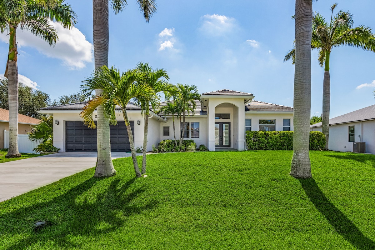 Unwind Cape Coral welcomes you to sunny southwest Florida, close to magnificent beaches, fishing, shelling, Minnesota Twins Spring Training & much more. Come enjoy this new construction home with heated pool, Kayaks, heated and cooled game room (PlayStation 5), gulf access - salt water canal, 4k oled tv's & many more refreshing amenities. You will love this clean & bright home with lovely décor. Located in the highly sought after Pelican neighborhood of Southwest Cape Coral!