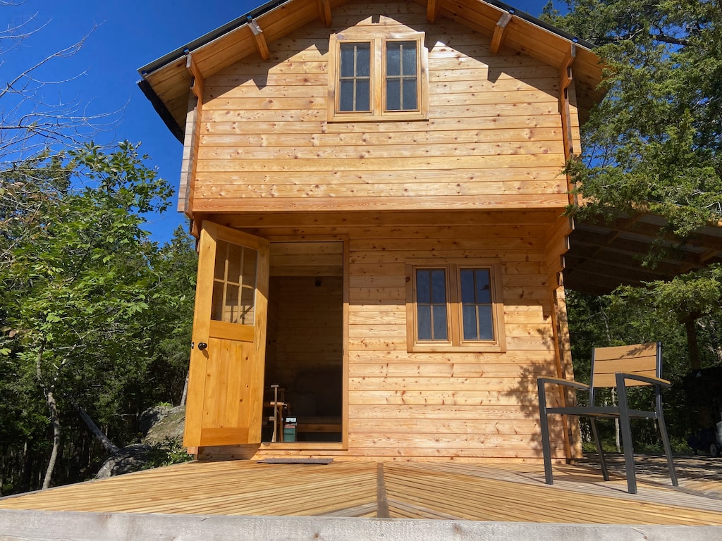 Howe Island Bunkie: A warm welcome to anyone looking for a private escape to relax, kayak to another island, use your bike, etc. Cabin sleeps 2 with separate bathroom. Property includes kayaks , peddle boat, firepit (wood provided), cards, board games. Cabin has electricity with mini-fridge, microwave, kettle, tea, coffee (Keurig), dishes, BBQ, fan, bedding provided. Bring your food, special beverages, and relax. Pets stay free.