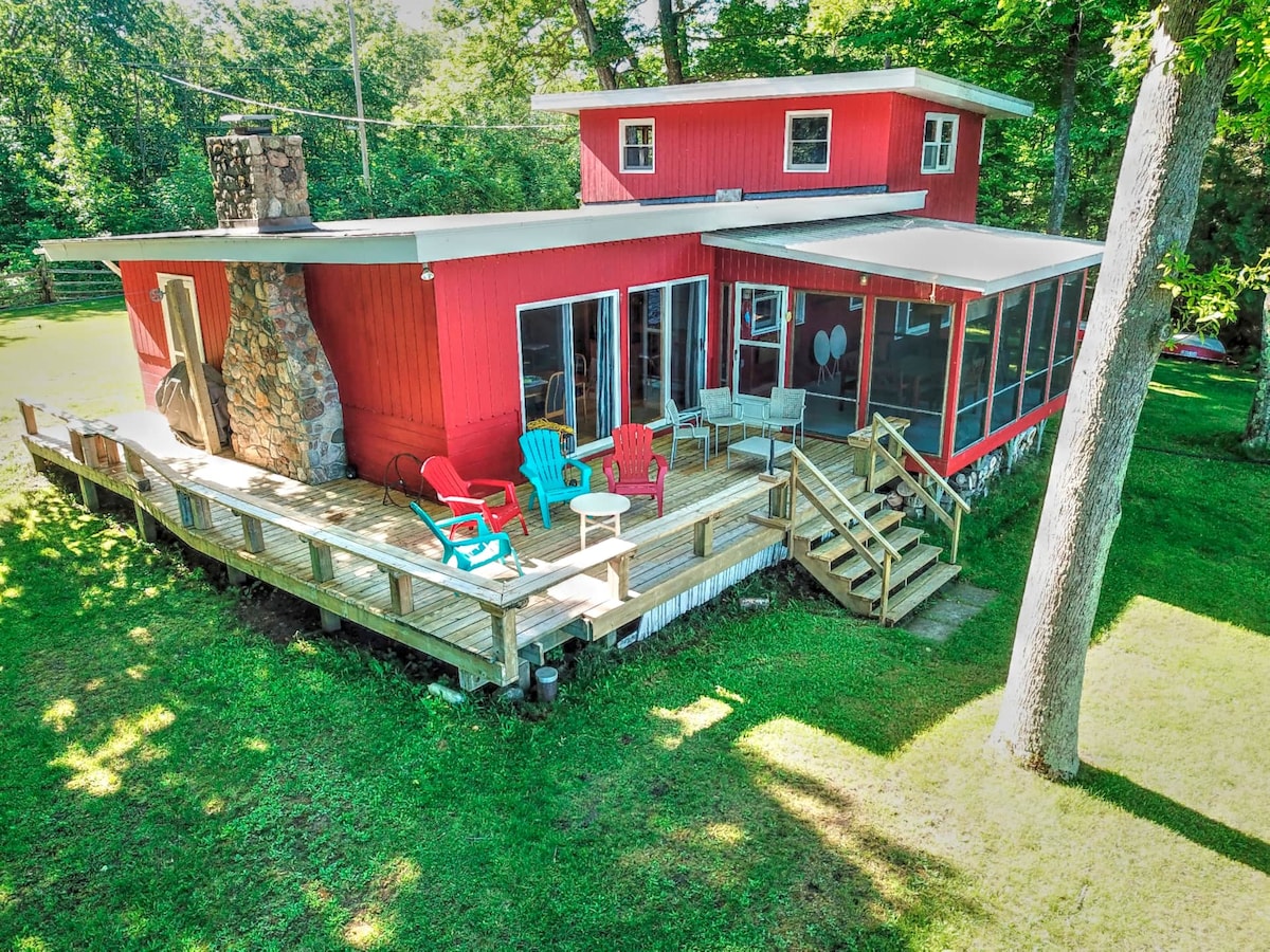 Welcome to Otters’ Holt! Nestled among maples on a tree-filled hillside, this newly renovated cottage boasts stunning lake views. Relax with a book in the dappled shade on the wrap-around deck, or bask in the sun on the dockside platform. Play cottage games or have fun in the water on the oversized float mat, canoe, kayak or standup paddleboard. Create unforgettable memories as you paddle or fish on the quiet lake, watch the herons fly by, listen to the loons or spot an otter or two!