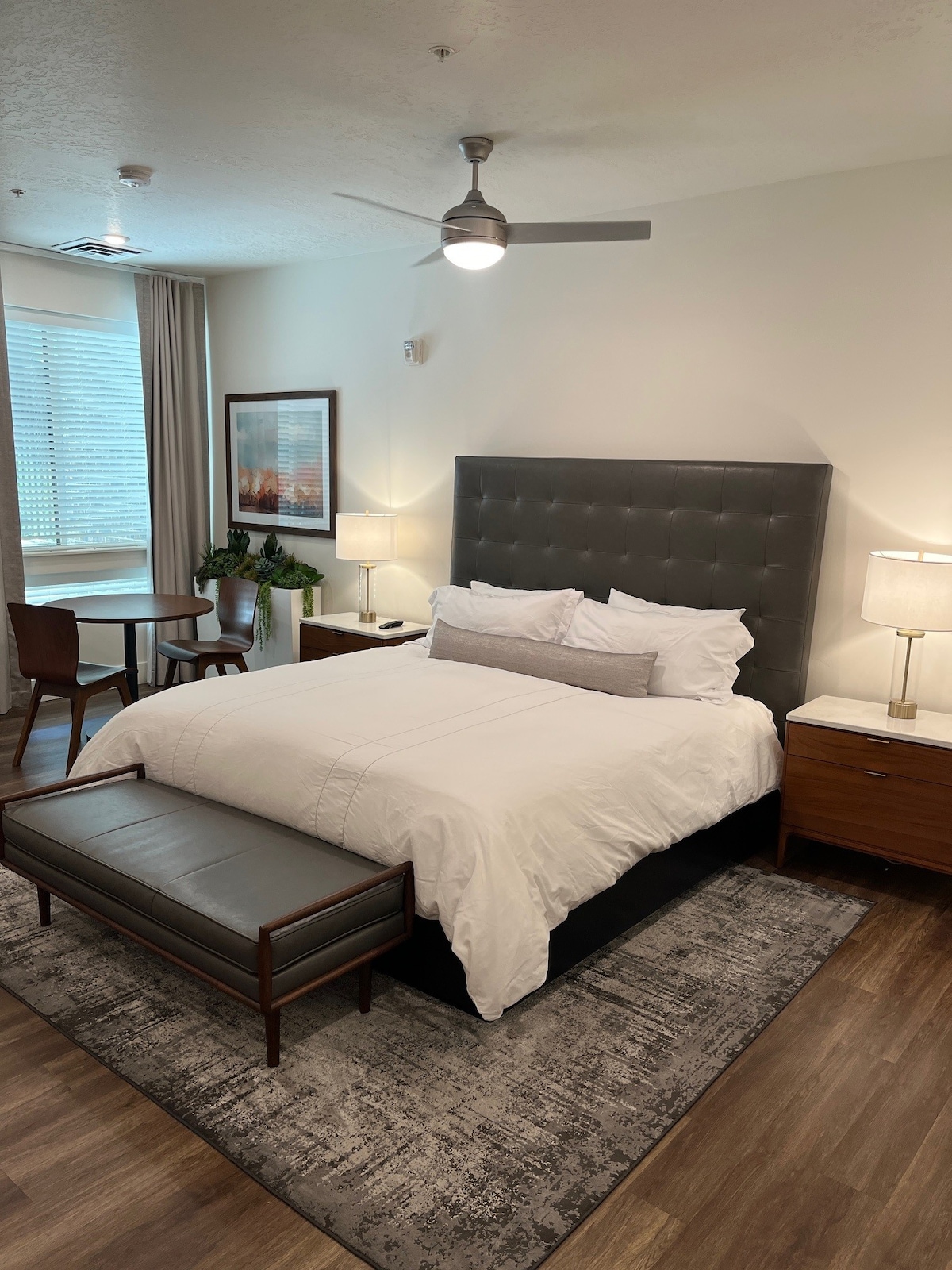 This new modernized apartment comes with a huge Gym, Pool (pool is CLOSED for the winter season, it opens up again in May), Hot Tub (open all year round), Luxury Clubhouse w/ a Pool Table and Shuffle Board, BBQ Grills, Firepits, Pickle Ball Courts, Designated Workspace with High Speed WiFi, AND a Full Kitchen that comes fully stocked w/ cookware, utensils, coffee, and other kitchen essentials. The mounted 55" Roku TV gives access to all your favorite streaming apps.